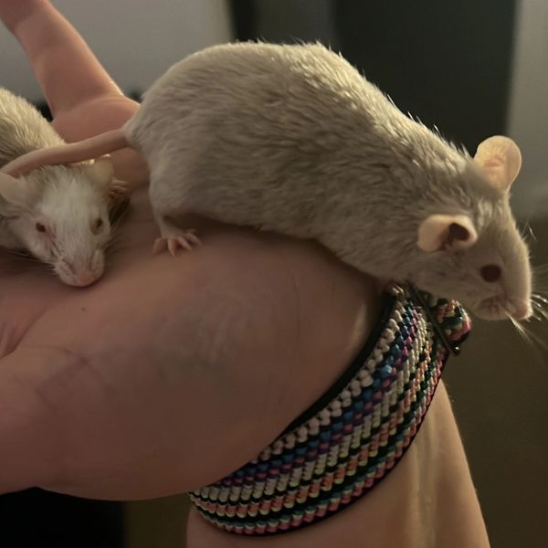 Mama and Daisy remain the smallest charges we've ever had. They were tiny mice, and Mama was a very old girl who looked her age. They were sweet, gentle girls, and even thought we were warned that Mama might pass while we minded them, she made it through like the tough little thing she was. We shed a tear for these girls when we heard they'd passed, and our Founder later adopted their brother due to travel by their Mum.